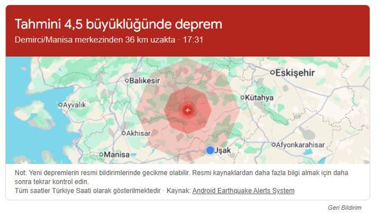 Manisa’nın Demirci ilçesinde meydana gelen 4,5 büyüklüğündeki deprem, çevre illerde olduğu gibi Uşak’ta da hissedildi.