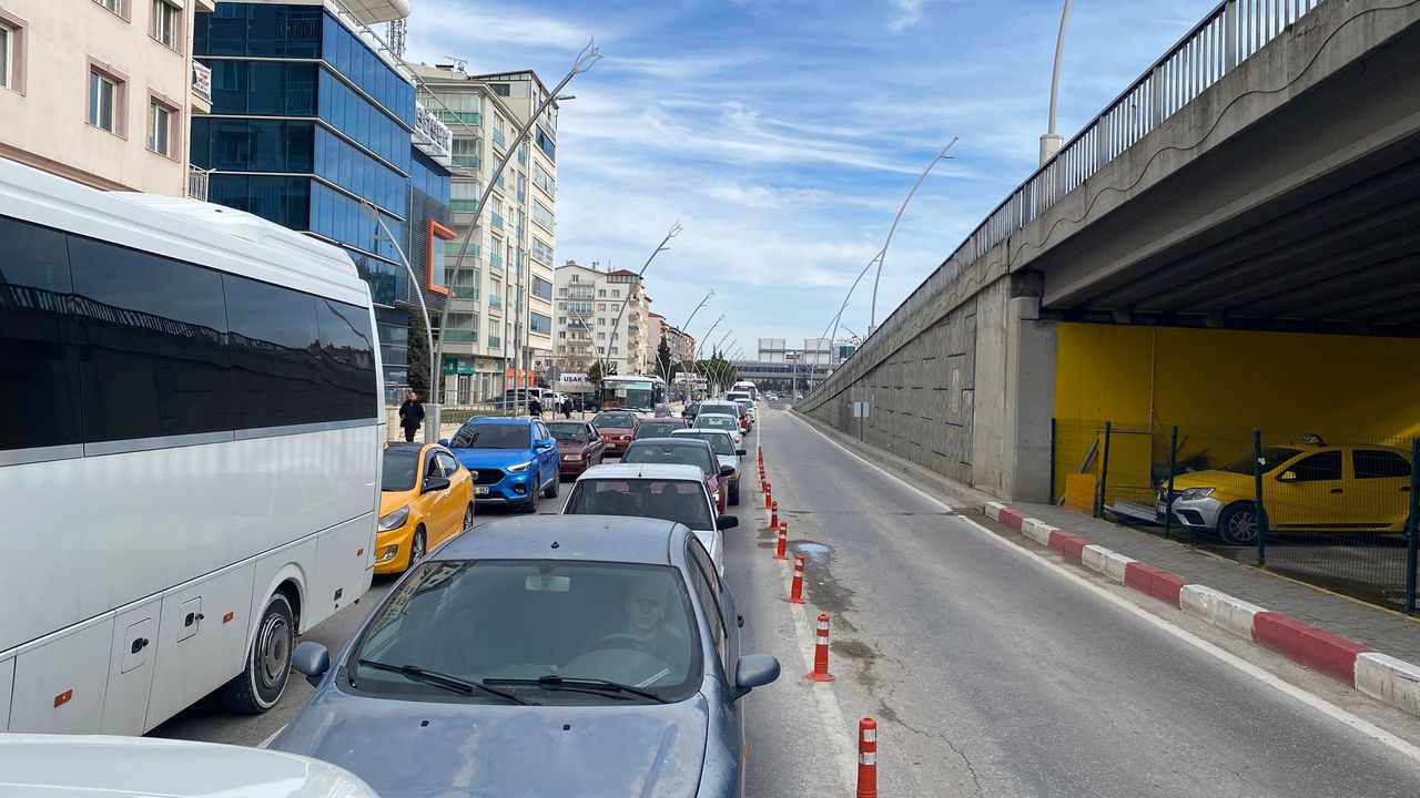 Uşak’ta Dörtyol ışıklarda bulunan üç şeritli İzmir–Ankara karayolunda yapılan yeni trafik düzenlemesi, gün içerisinde ciddi trafik sıkışıklığına neden oldu. Uşak Belediyesi Ulaşım Hizmetleri Müdürlüğü tarafından U dönüşü yapılabilmesi amacıyla bir şeridin dubalarla ayrılması, araç yoğunluğunu artırdı.