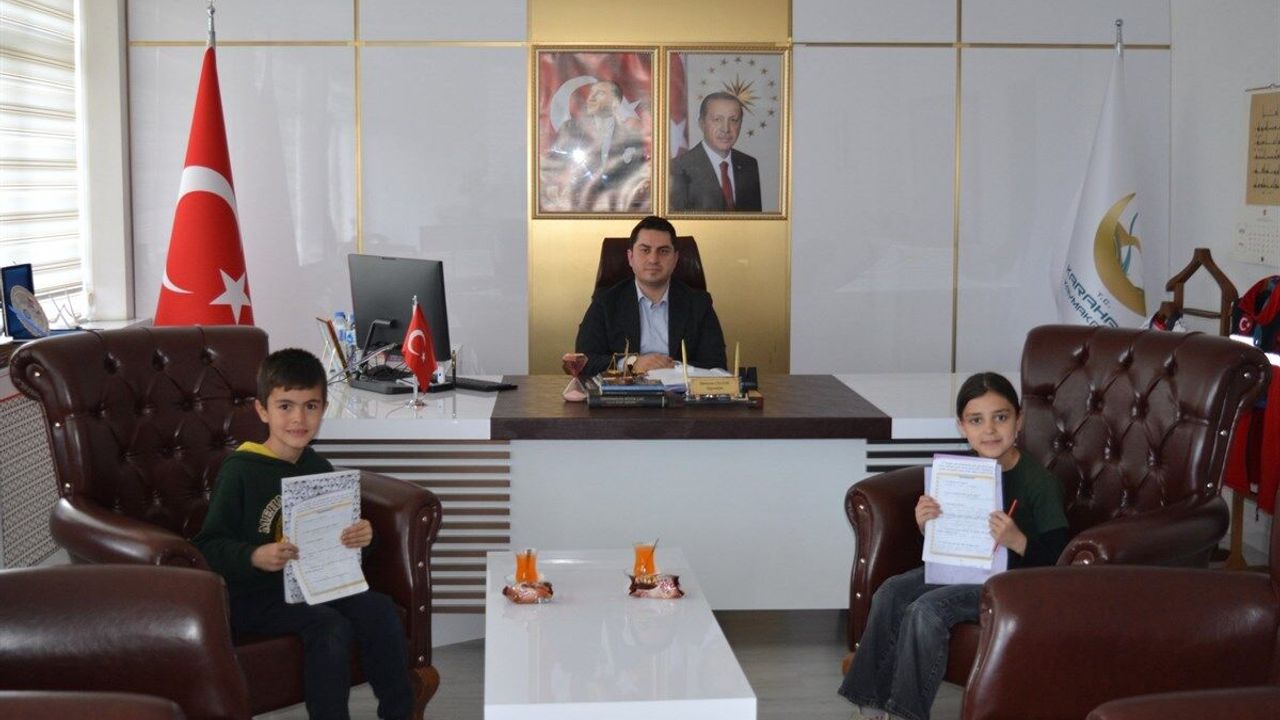 Mehmet Yeşil İlkokulu öğrencileri, “Yakın Çevremizdeki Yöneticileri Tanıma” etkinliği kapsamında Karahallı Kaymakamı Ramazan Çelebi’yi makamında ziyaret etti.